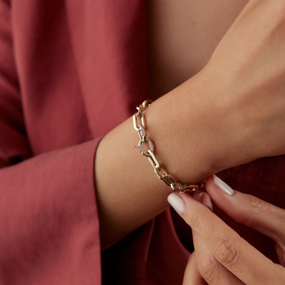 Tasarım Pembe Taşlı Bileklik: Pembe taşlı tasarım bileklik, zarafeti ve şıklığıyla göz alıcı bir detay sunar.