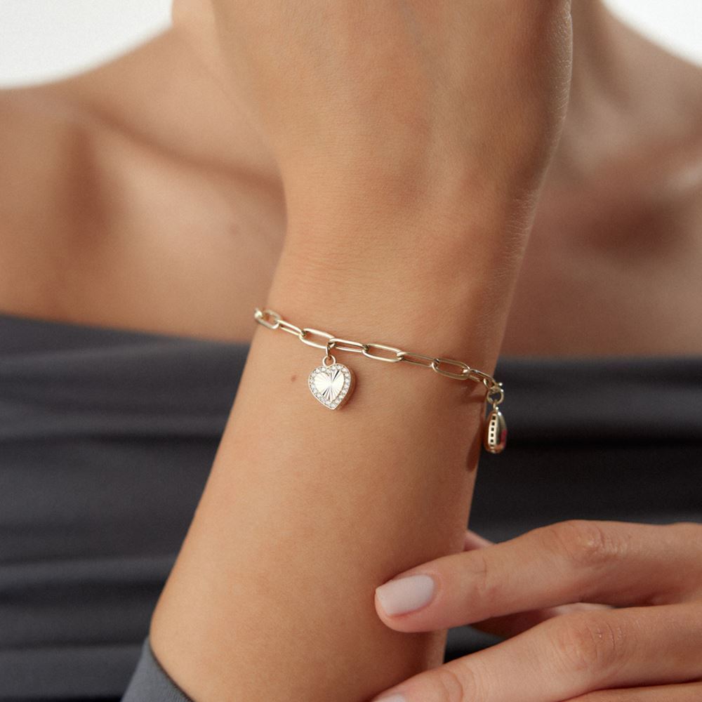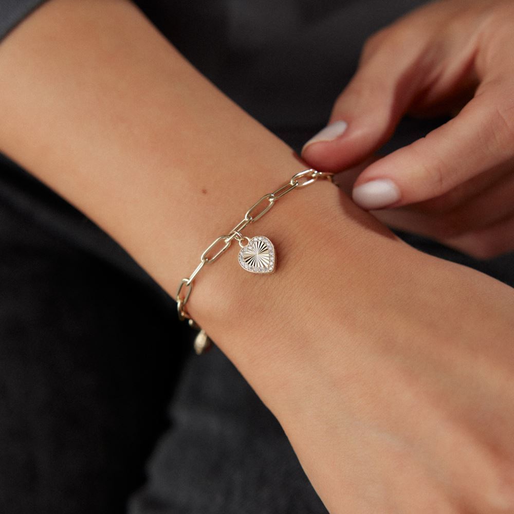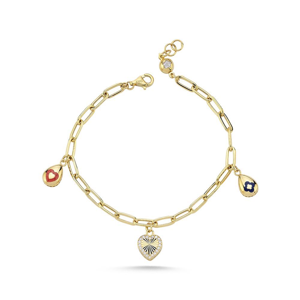 Taşlı Kalpli Bileklik: Parlak taş detaylarıyla süslenmiş kalpli bileklik, zarafetiyle stilinizi tamamlar.