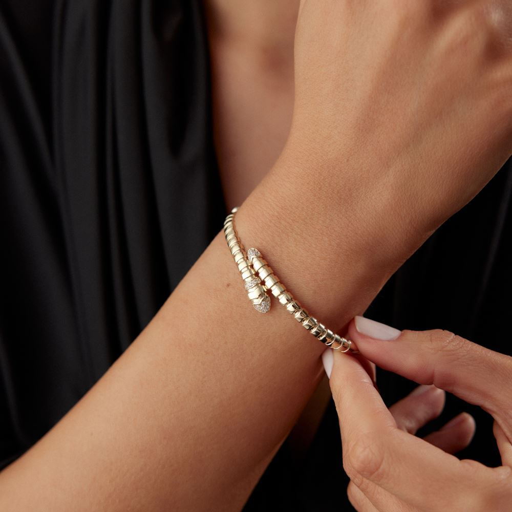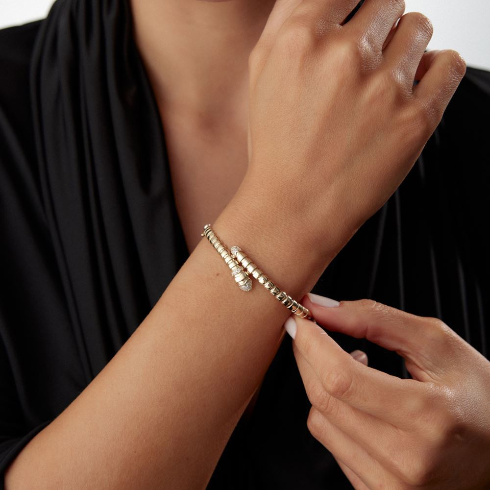 Işıltılı taşlarla süslenen kelepçe, zarif ve göz alıcı bir görünüm sağlar.