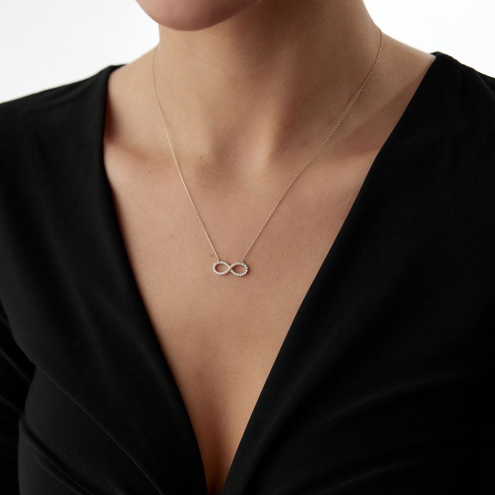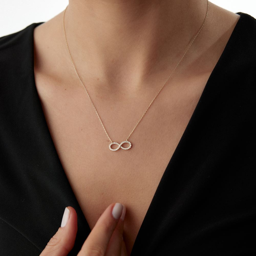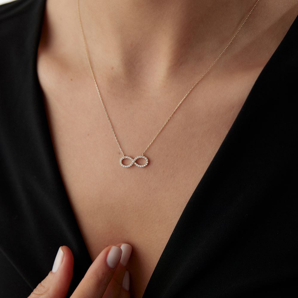 Taşlı Sonsuzluk Kolye sonsuzluk sembolü ve taş detaylarıyla zarif bir aksesuar.