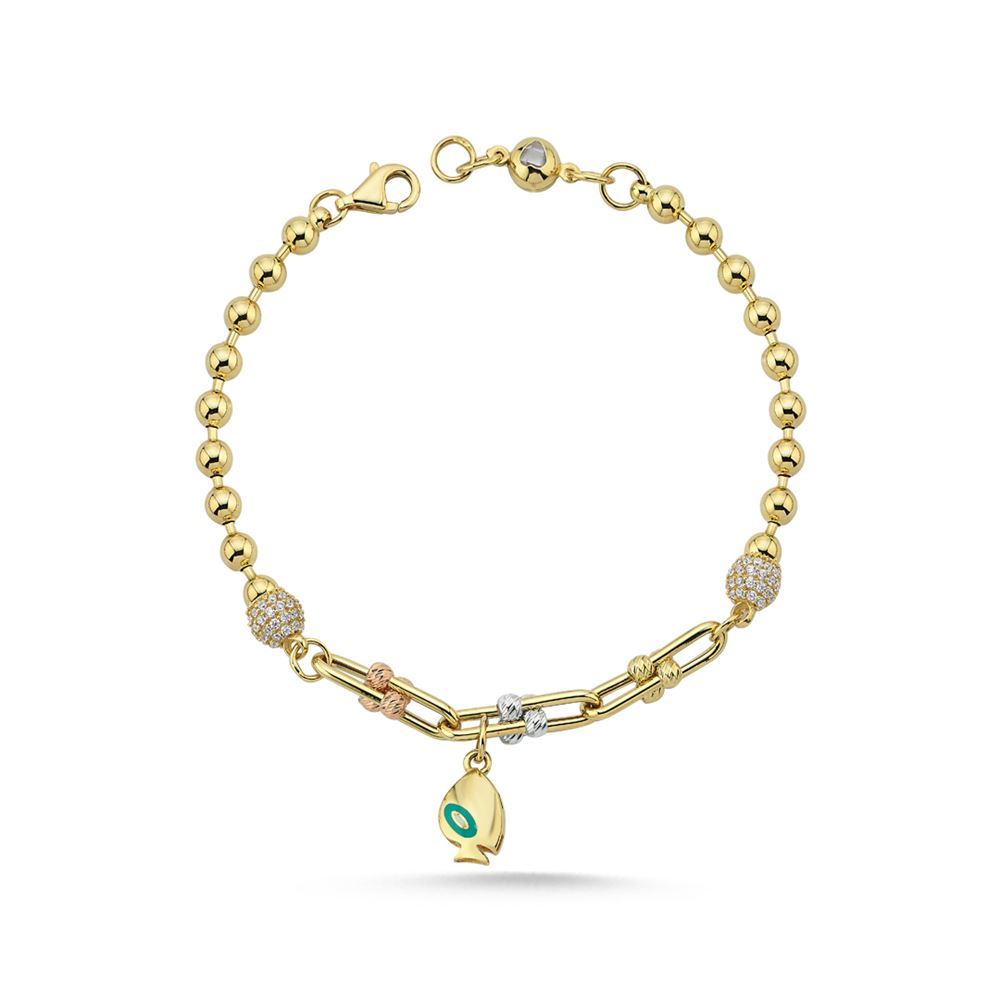 Toplu Dorika Balık Trend Zincir Bileklik: Dorika ve balık trend zincir tasarımı, zarif bir görünüm sunar.