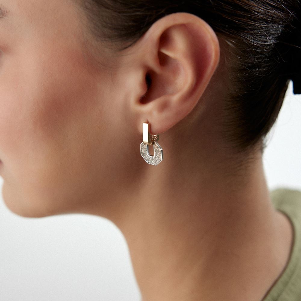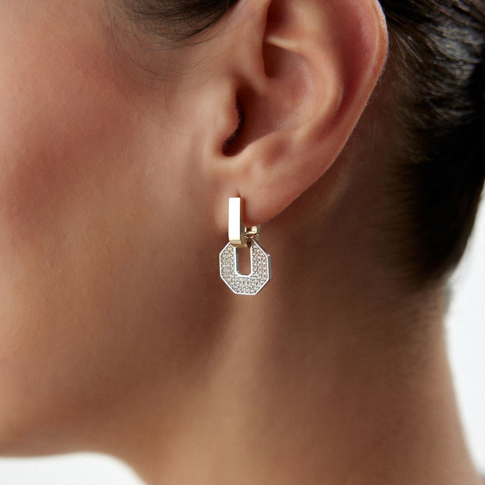 U Tasarım Taşlı Sallantı Küpe: U tasarımı ve taş detaylarıyla süslenmiş sallantı küpe, zarafetiyle öne çıkar.