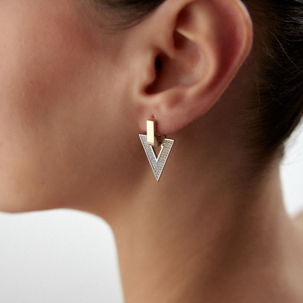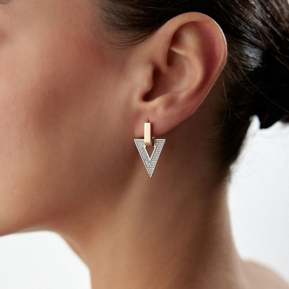 Üçgen Tasarım Taşlı Sallantı Küpe