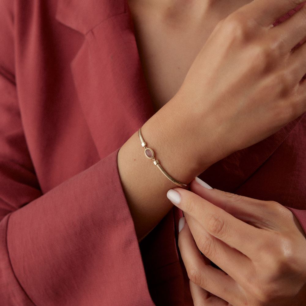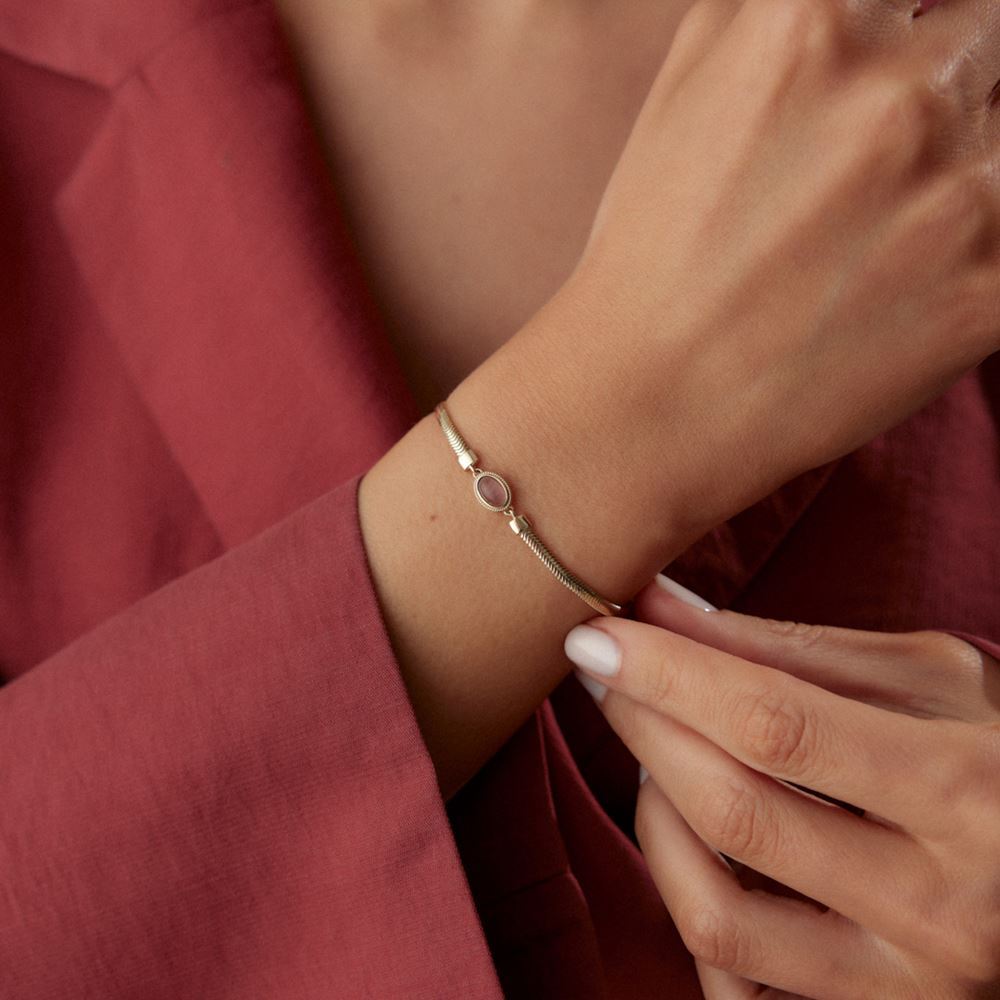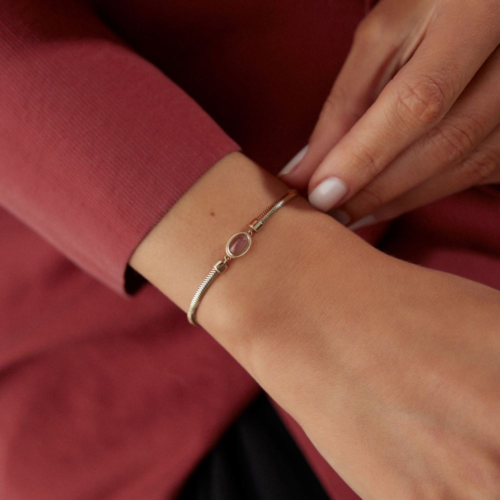Pembe Taşlı Balıksırtı Bileklik: Pembe taş detaylarıyla süslenmiş balıksırtı bileklik, feminen bir dokunuş sunar.