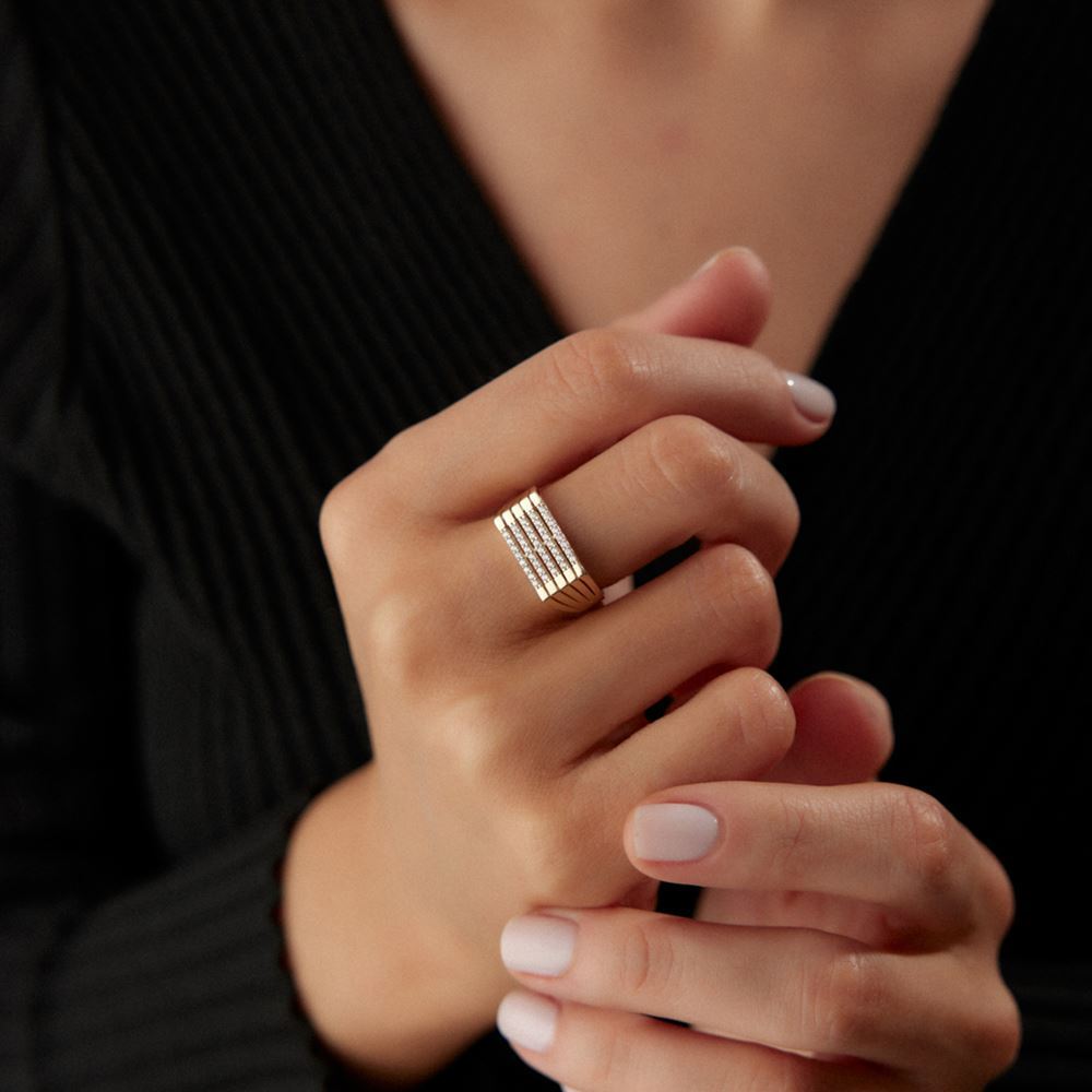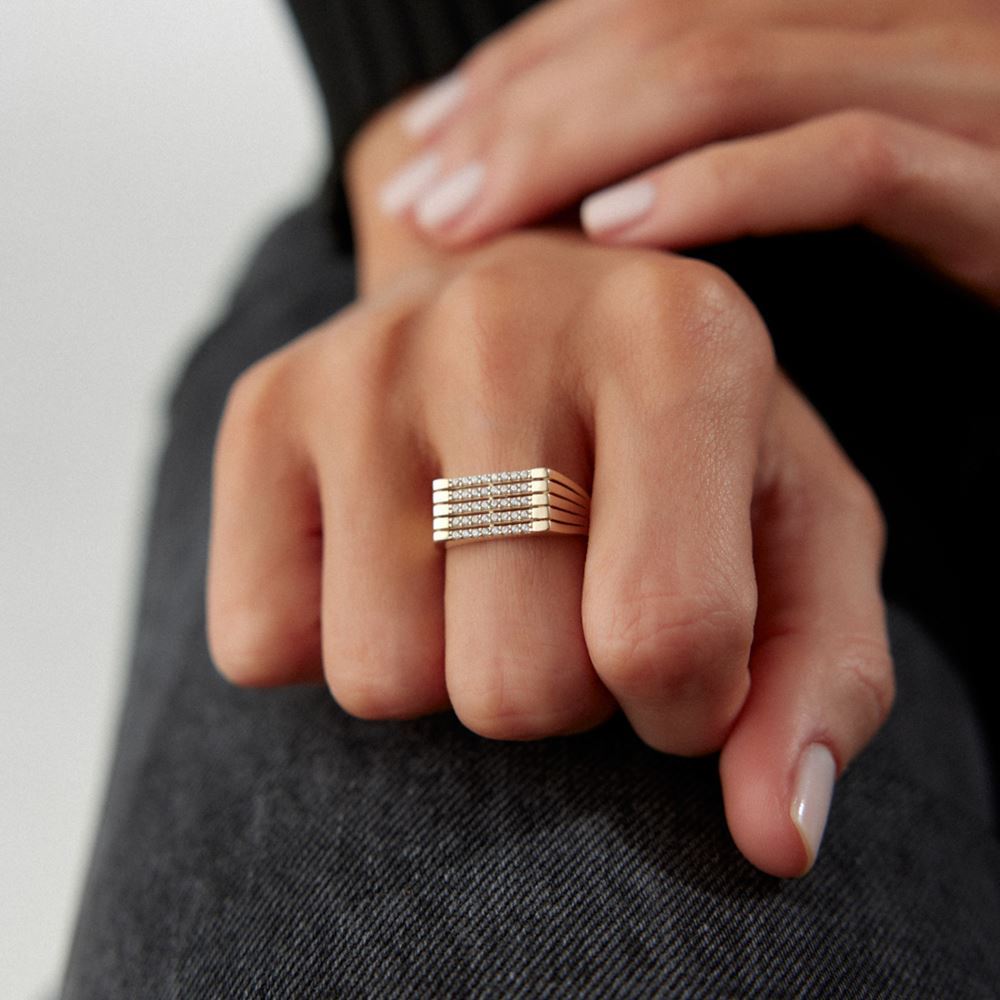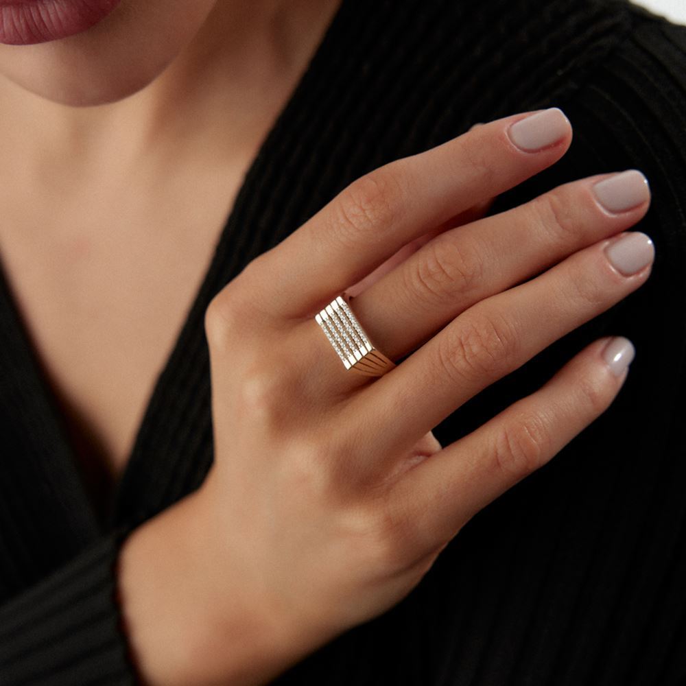 Yatay tasarım taşlı yüzük, sade ve zarif bir görünüm sunar.