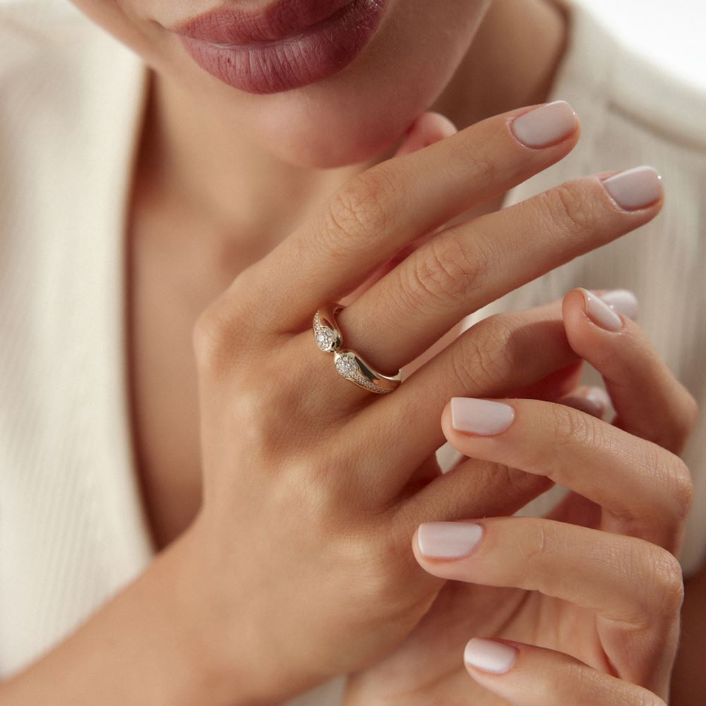 Yılan tasarım taşlı yüzük, cesur ve etkileyici tarzıyla dikkat çeker.