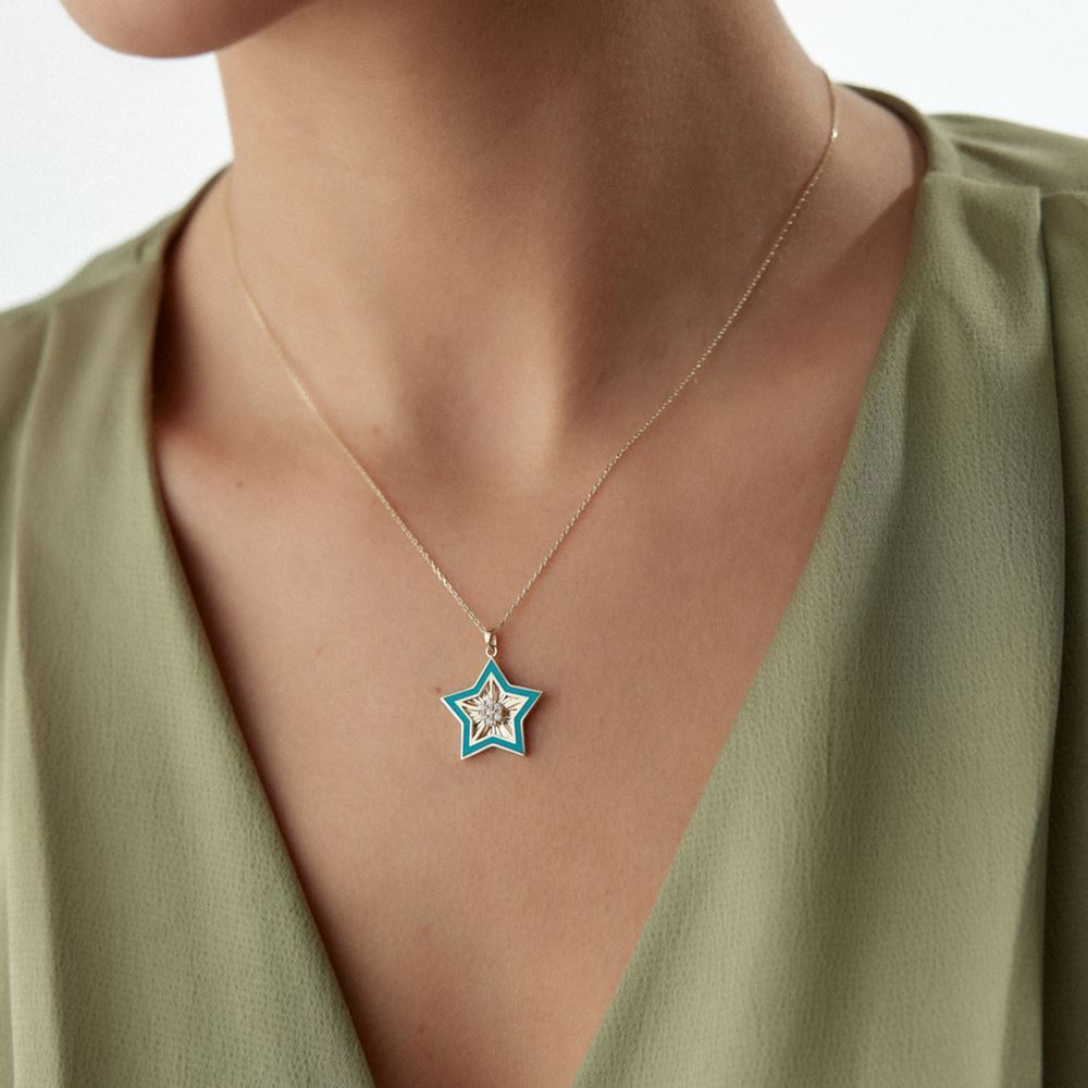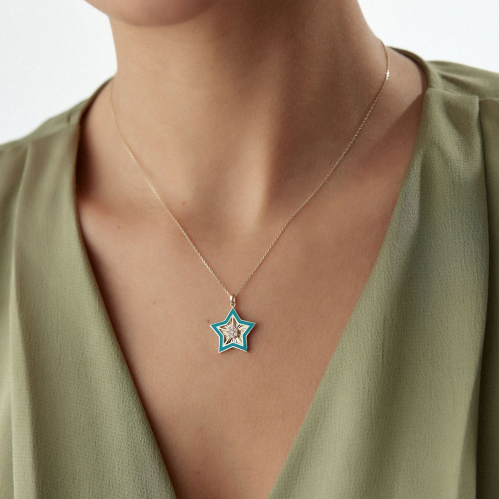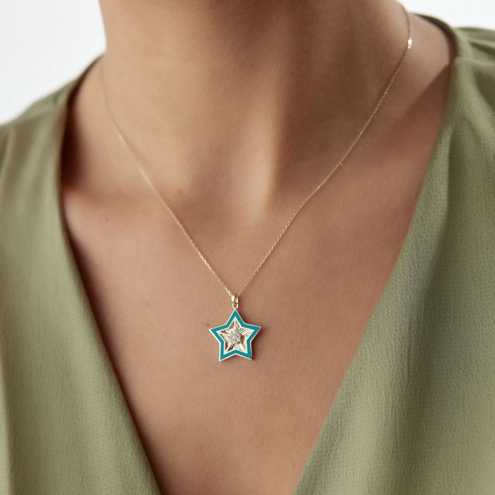 Yıldız Mineli Kolye: Yıldız figürüyle süslenmiş mineli kolye, tarzınıza gece gökyüzünün ışıltısını taşır.