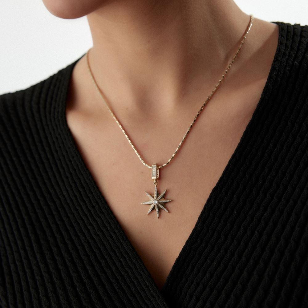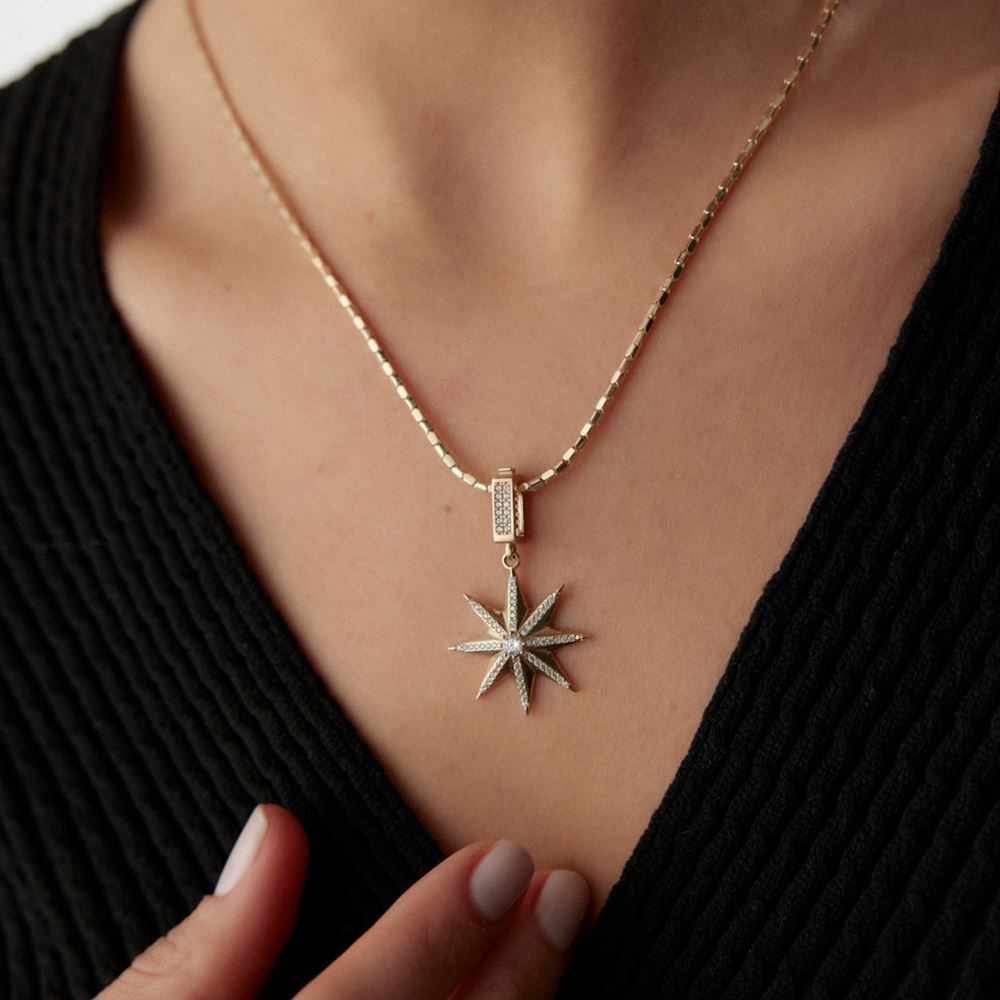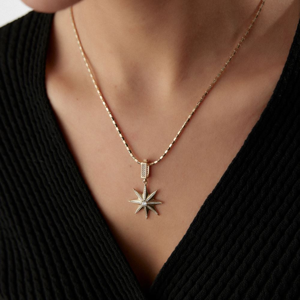 Yıldız taşlı kolye uçları, zarif ve ışıltılı bir şıklık sunuyor. E-Goldia'dan unutulmaz bir hediye seçeneği.