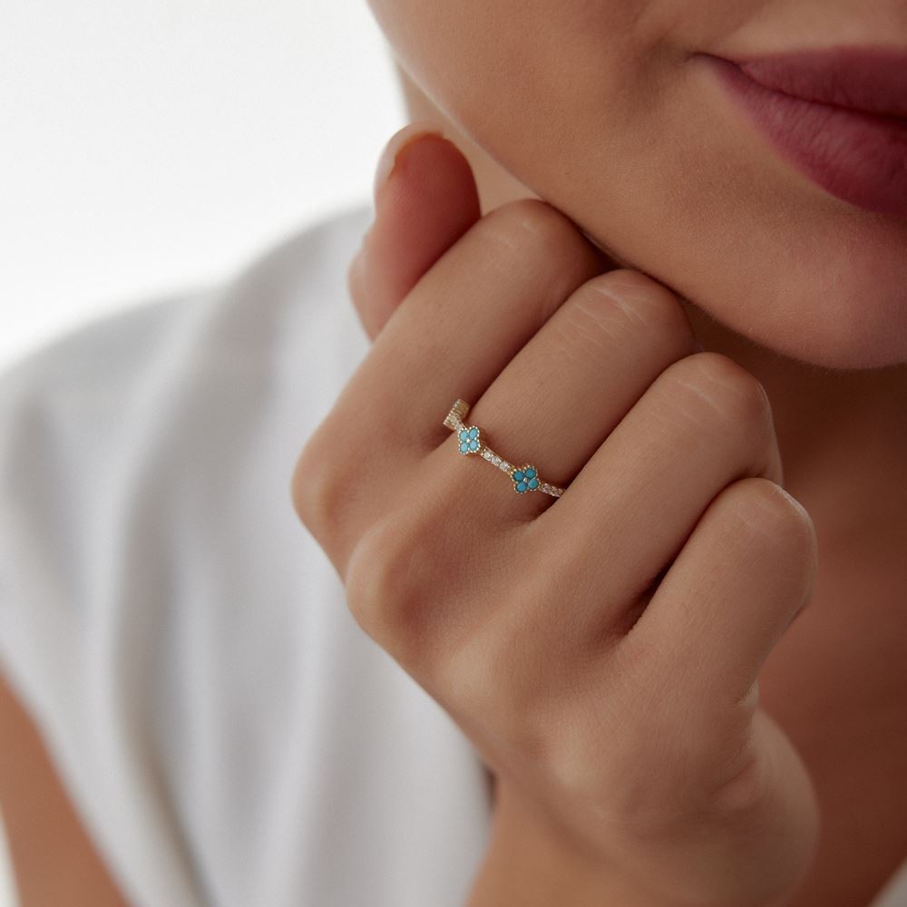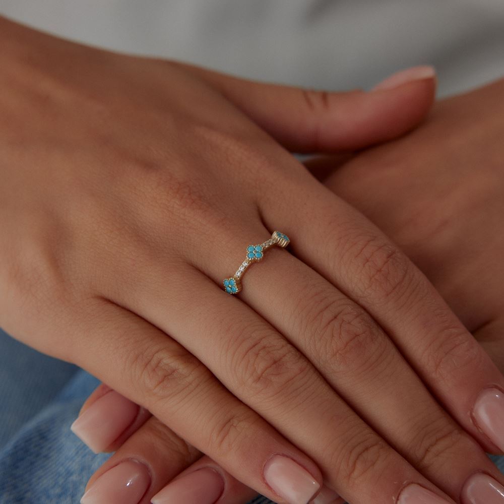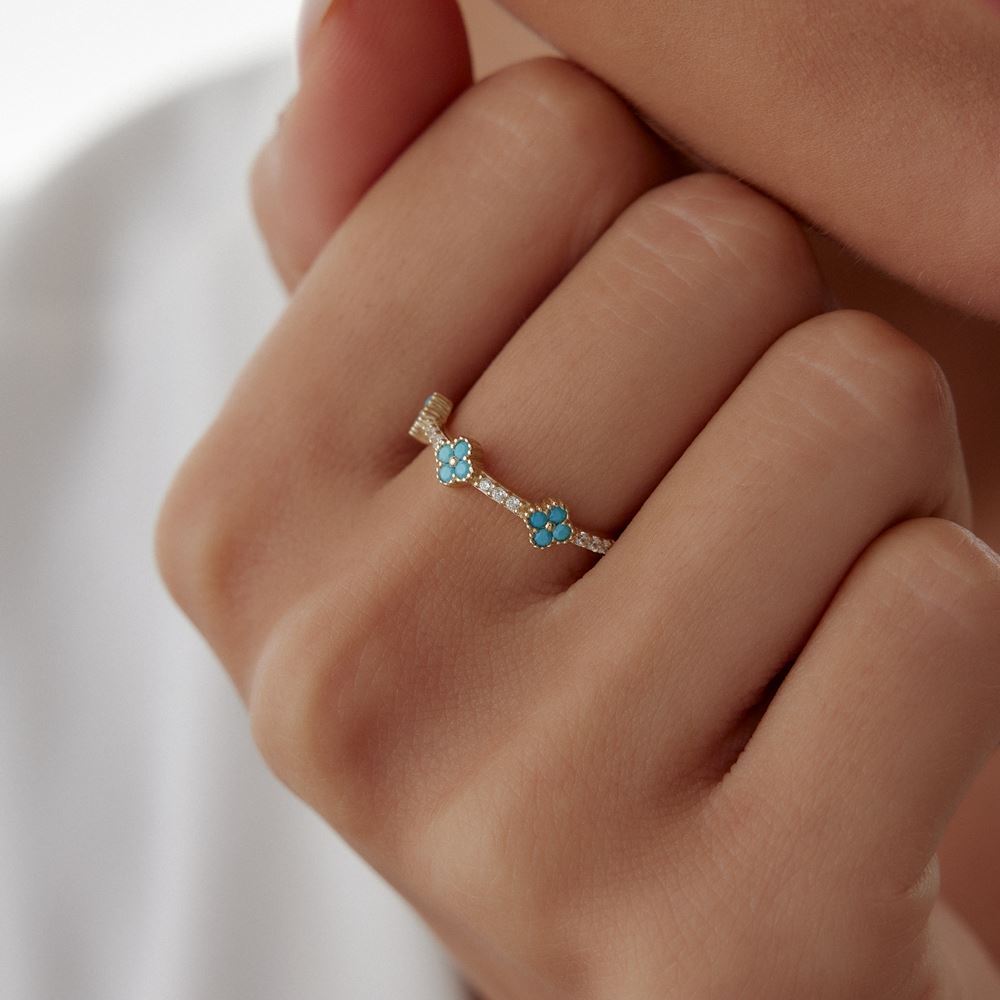 E-Goldia Jewellery’nin Yonca Firuze Baget Taşlı Yüzük koleksiyonu, şans sembolü yonca figürü, firuze taşının mistik enerjisi ve baget kesim taşların zarafetiyle eşsiz bir tasarım sunuyor. Altın işçiliği ve modern detaylarıyla dikkat çeken bu yüzükler, hem günlük kullanım hem de özel anlar için mükemmel bir tercih. Şıklık ve anlamı bir araya getiren bu özel tasarımları online kuyumcu güvencesiyle keşfedin!