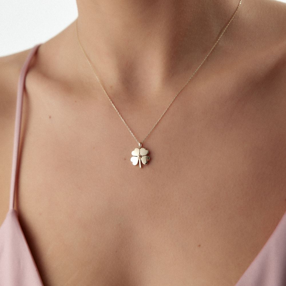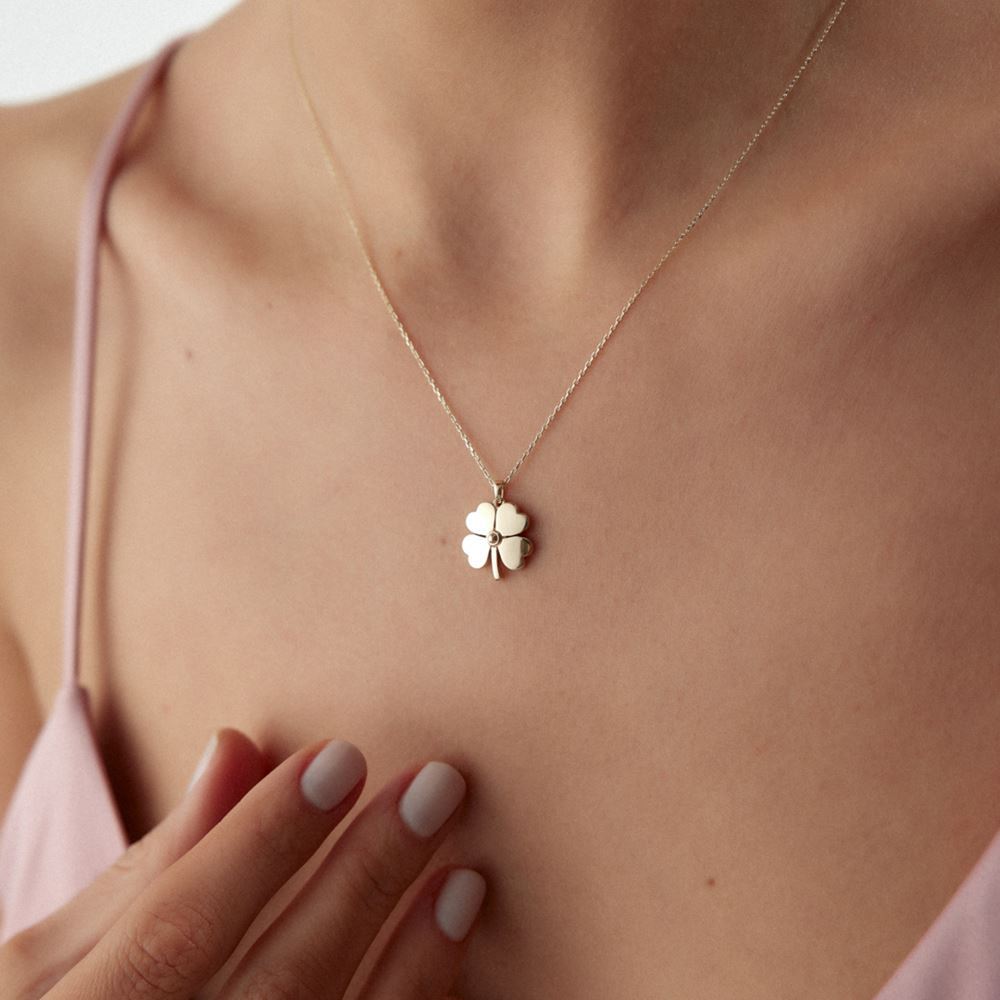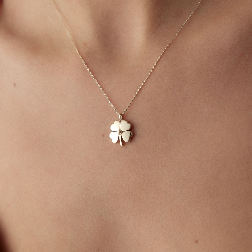 Yonca figürüyle zarif ve şans dolu bir aksesuar seçeneği.