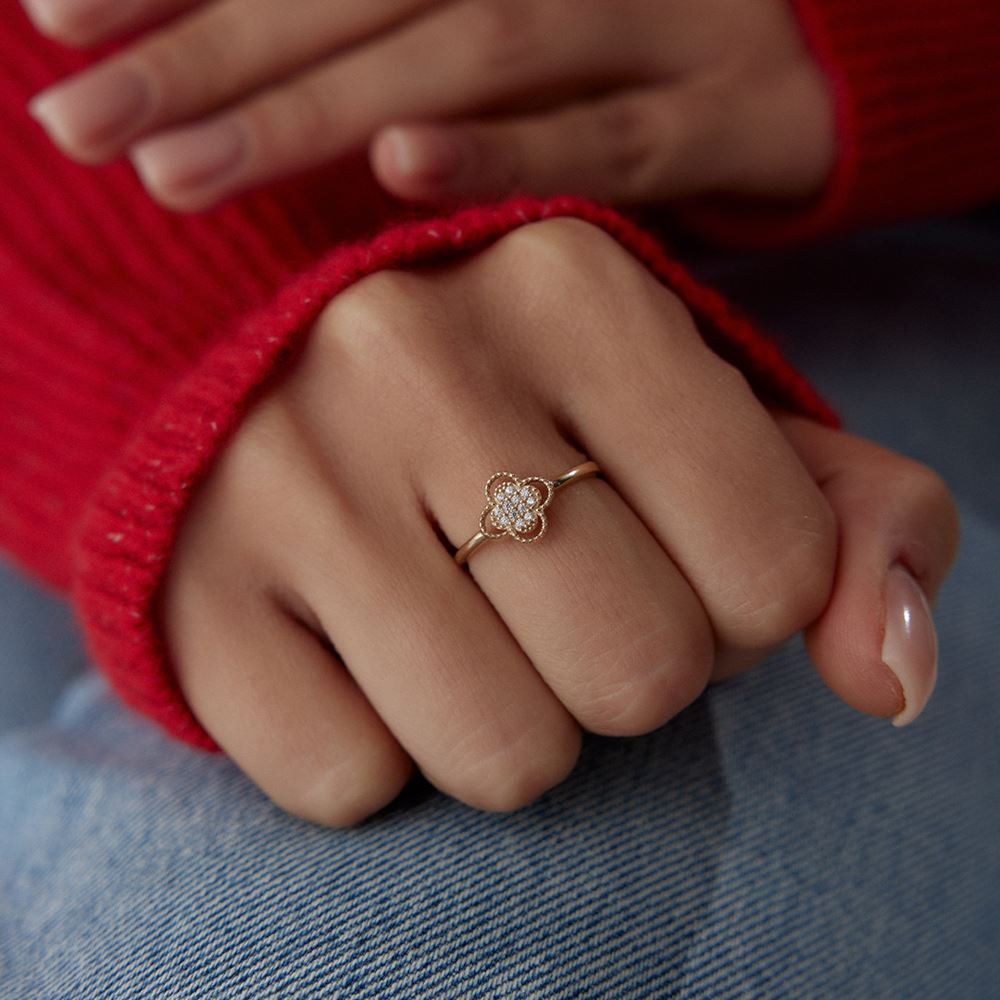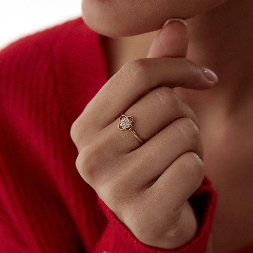 E-Goldia Jewellery’nin Yonca Taşlı Yüzük koleksiyonu, şans ve zarafeti bir araya getirerek stilinize anlam katıyor. Yonca figürü, ışıltılı taş detayları ve ince altın işçiliğiyle göz kamaştıran bu tasarımlar, hem günlük kullanım hem de özel anlar için ideal. Klasik ve modern dokunuşları bir araya getiren bu özel yüzükler, şıklığınızı tamamlıyor. Online kuyumcu güvencesiyle bu eşsiz modelleri keşfedin!