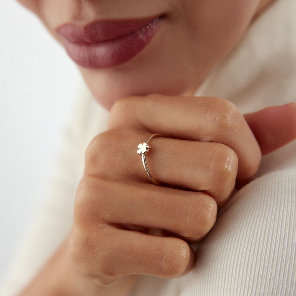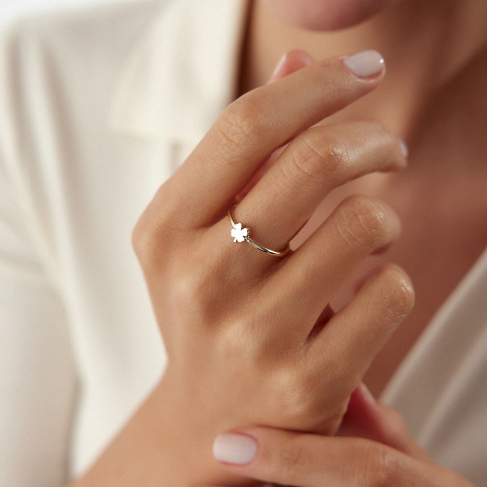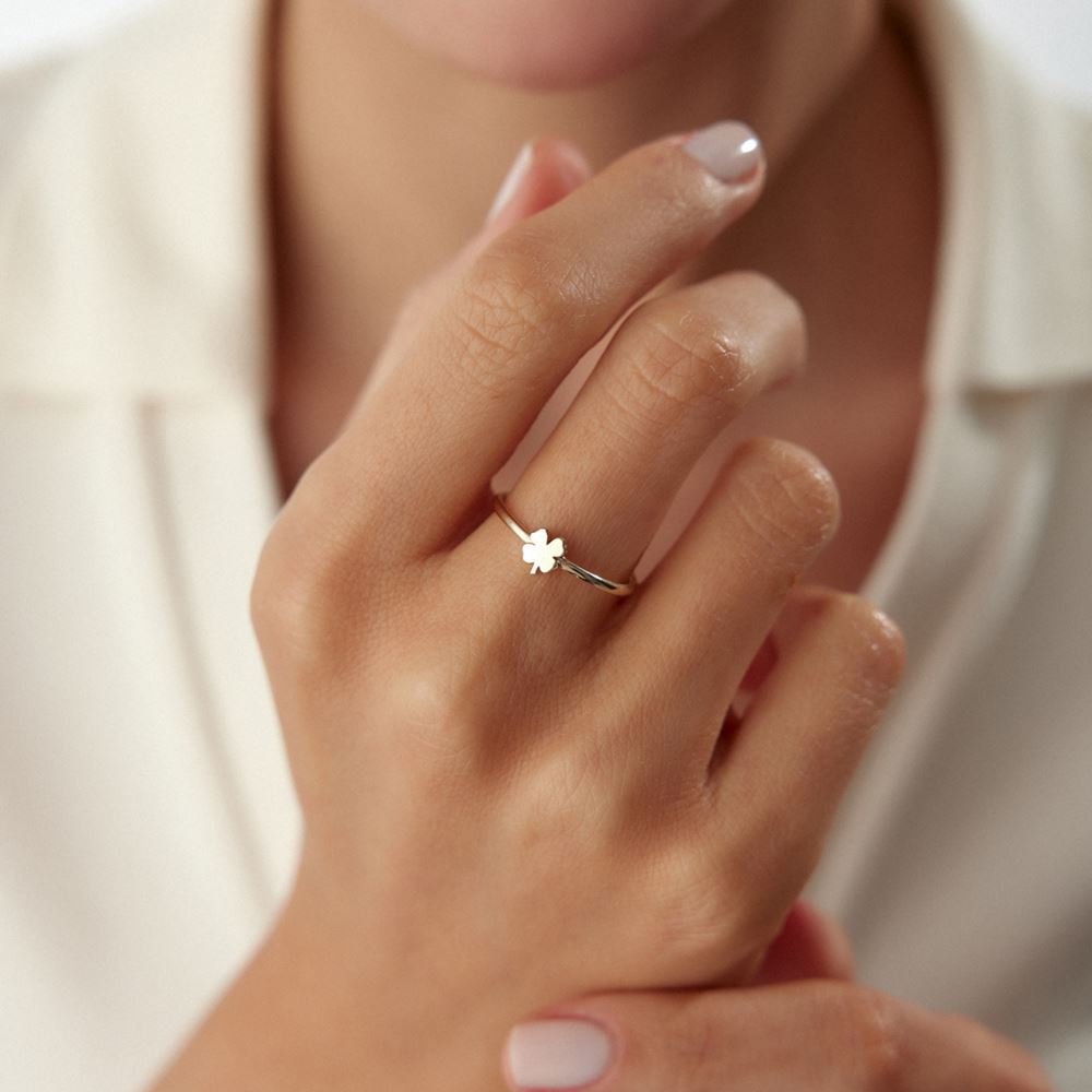 Şansınızı simgeleyen yonca yüzük ile güzelliğinizi tamamlayın. Zarif tasarımı ve anlamlı sembolü ile her parmağa değer katacak bir aksesuara sahip olun.
